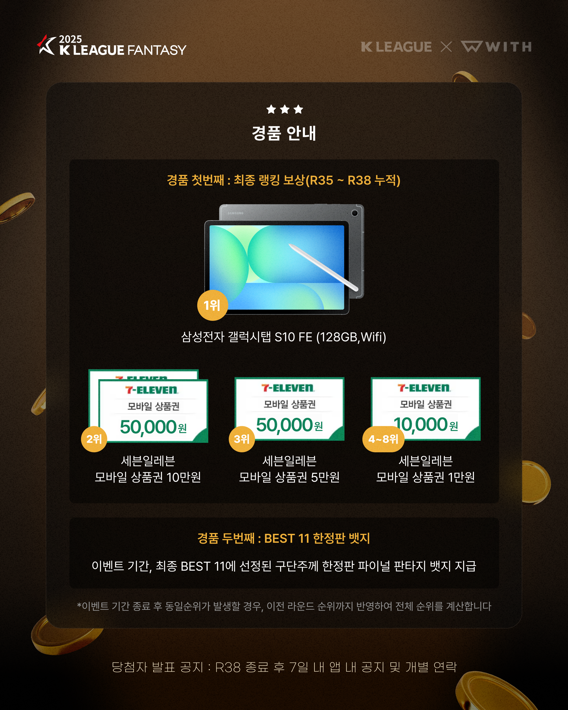 - 최종 당첨자 발표: R38 종료 후 7일 내 공지 및 개별 연락